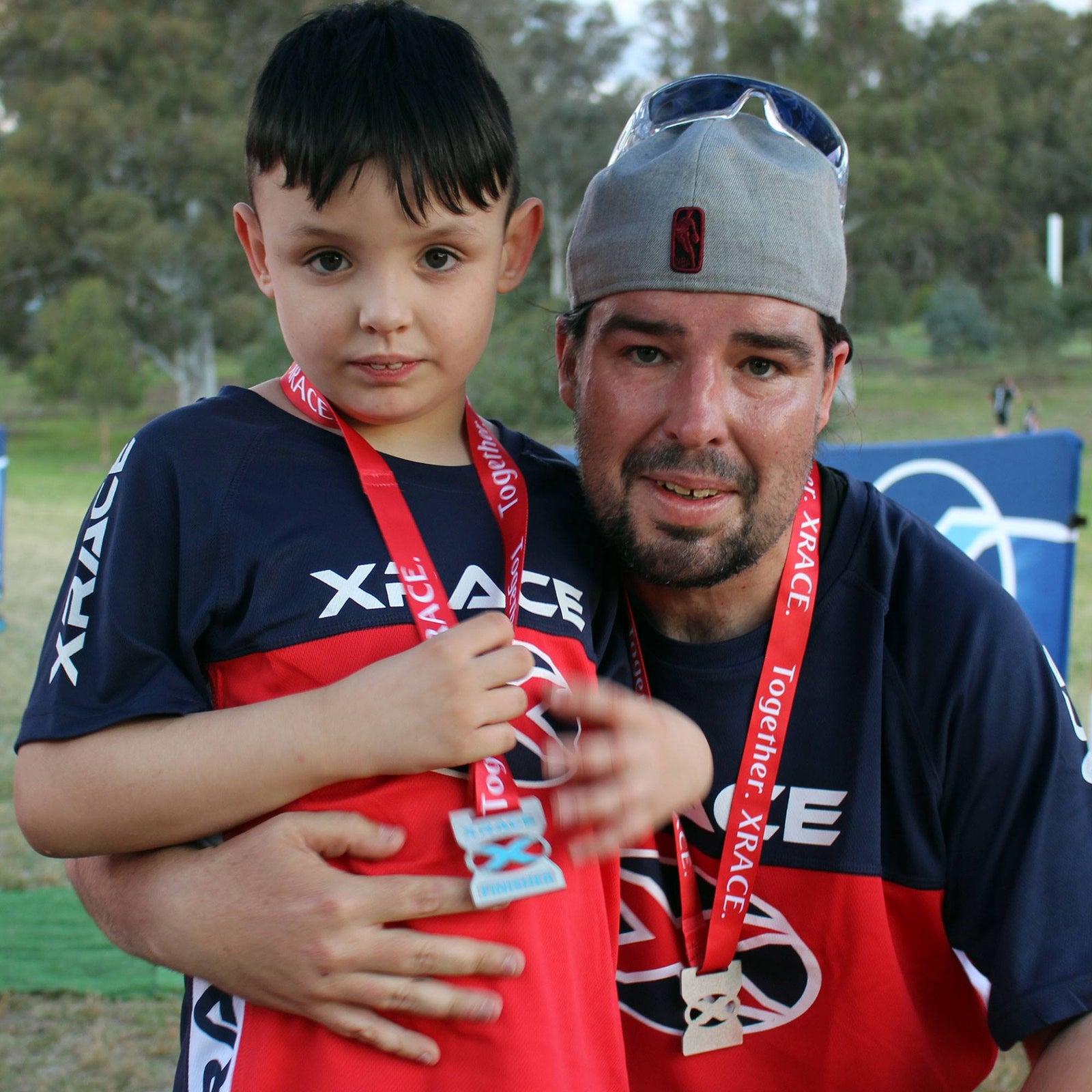 Michael Simms, pictured here with seven year old son Jordan at the finish line of XRACE Canberra.