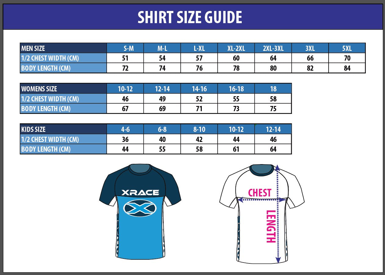 You will be provided with an XRACE t-shirt which must be worn during the competition. You must also wear the provided transponder (timing chip).