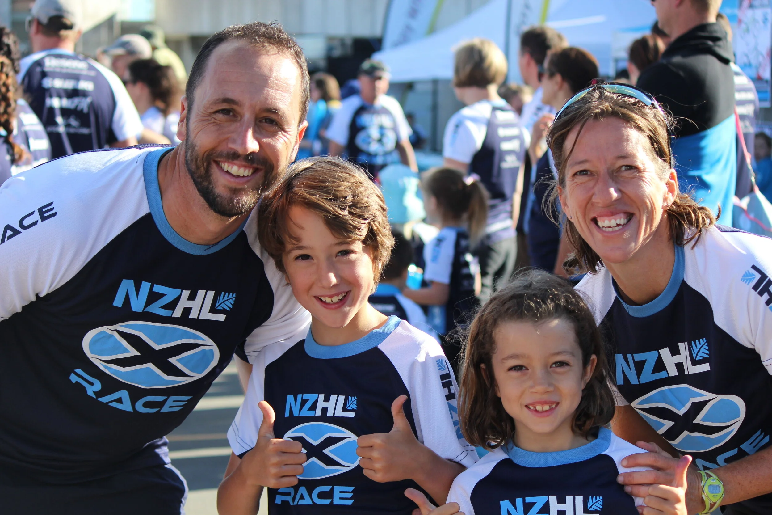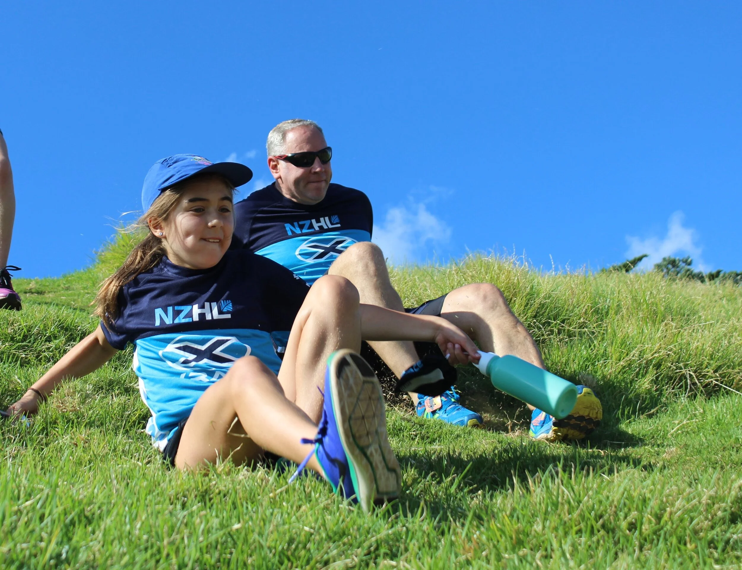 The light blue shirts.